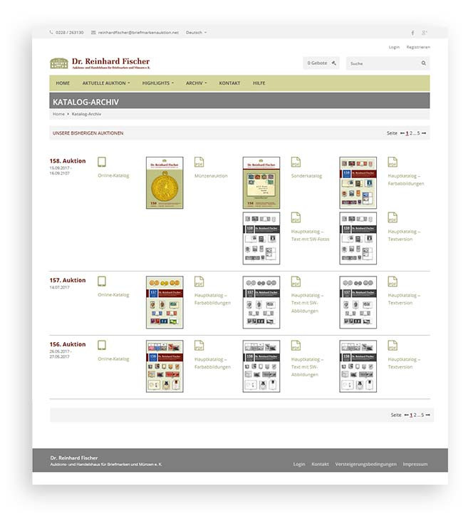 Darüber hinaus können die vergangenen Auktionen ebenfalls als Online-Katalog durchsucht werden.